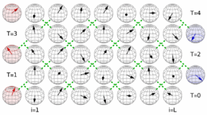 Sur la plan technique, les fluctuations KPZ en volume fini peuvent être obtenues en prenant la limite de grande échelle de systèmes de particules en interaction comme le modèle d’exclusion totalement asymétrique (TASEP) :